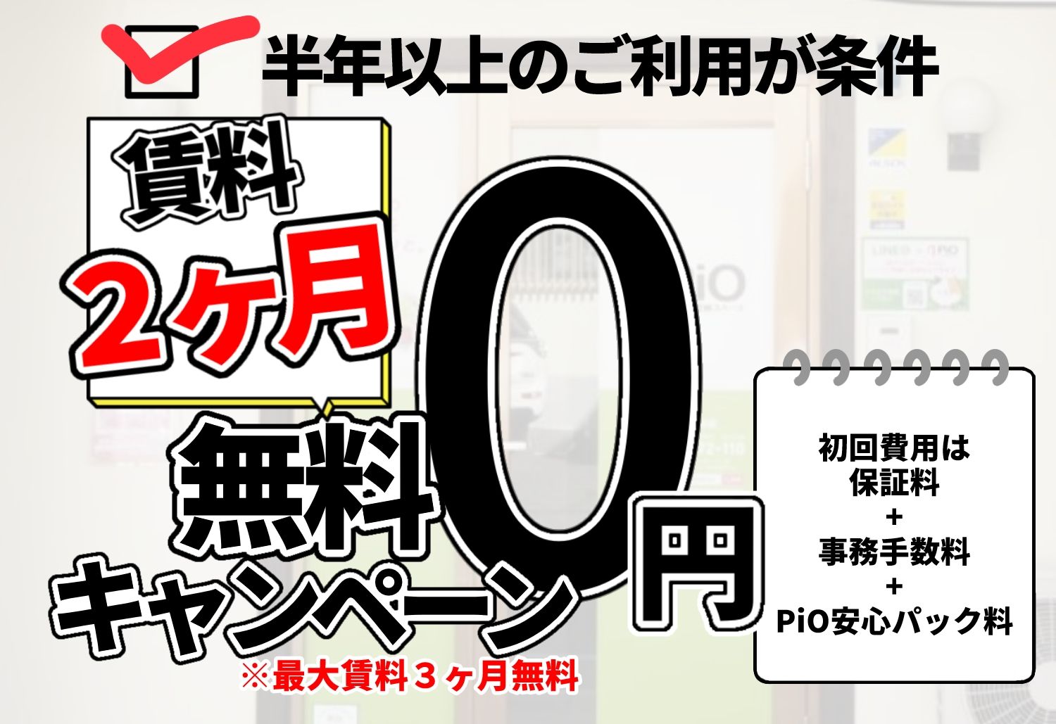 賃料2ヶ月無料キャンペーンを行っている店舗の場合、当月賃料と翌月賃料が無料となります。