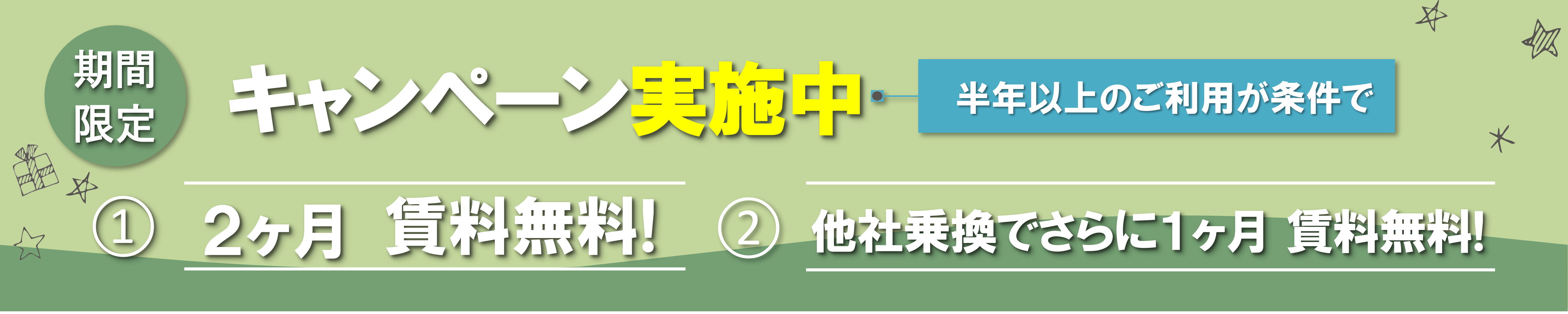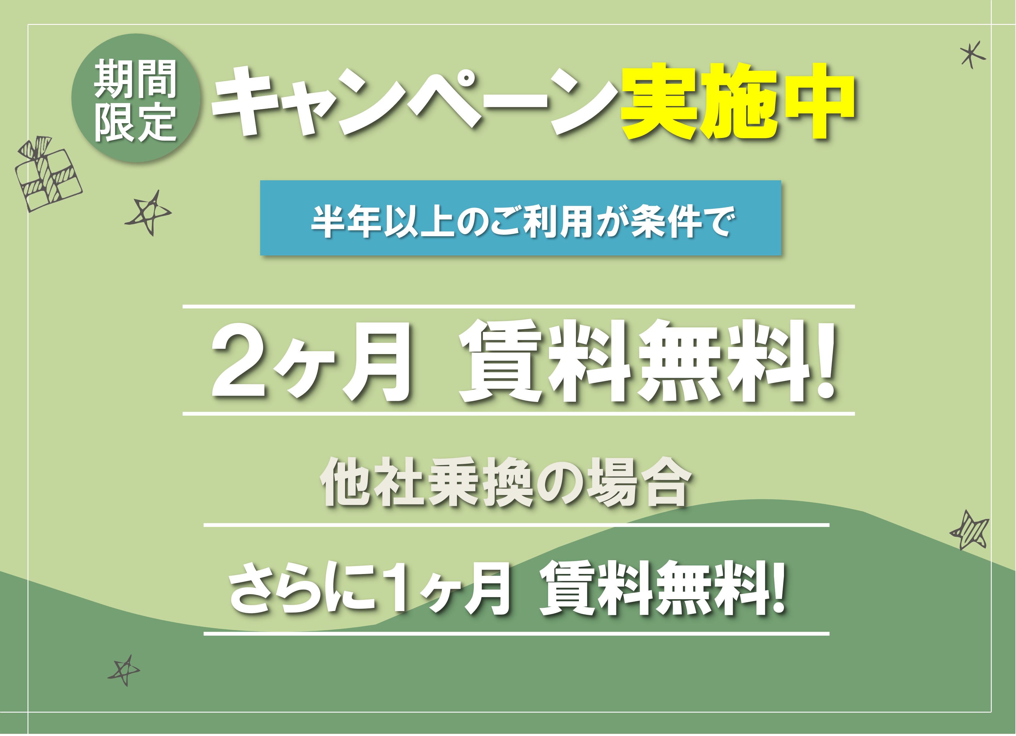 ※キャンペーンを行っている店舗では、ご利用期間が一定以上ある場合にキャンペーンが適用されます。キャンペーン期間に満たないご契約の場合は対象外となりますので、ご了承ください。