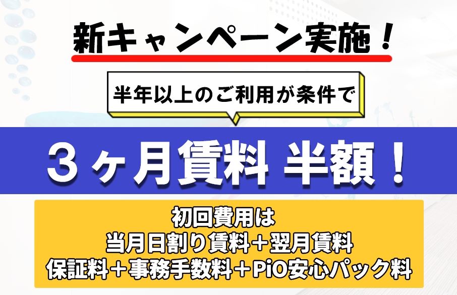 ※ご利用開始から1年経過後、毎年、年間保証料(税込賃料とPiO安心パックの約0.5ヶ月分)が必要となります。