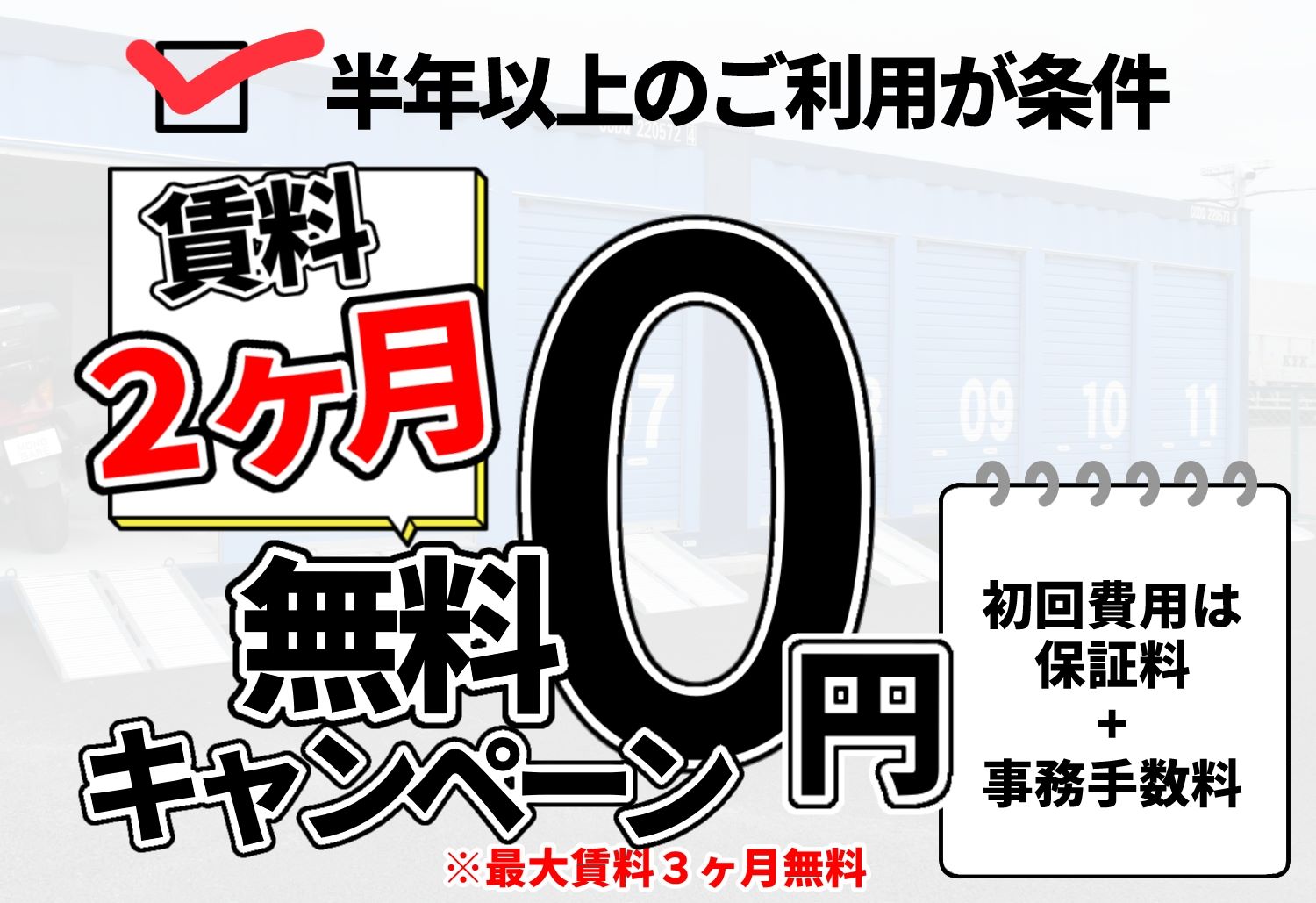 賃料2ヶ月無料キャンペーンを行っている店舗の場合、当月賃料と翌月賃料が無料となります。