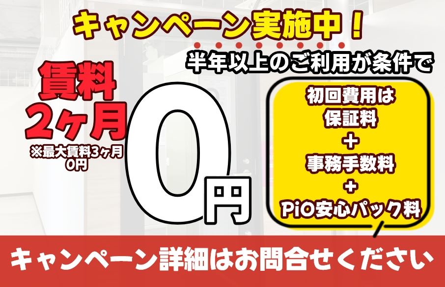 賃料2ヶ月無料キャンペーンを行っている店舗の場合、当月賃料と翌月賃料が無料となります。