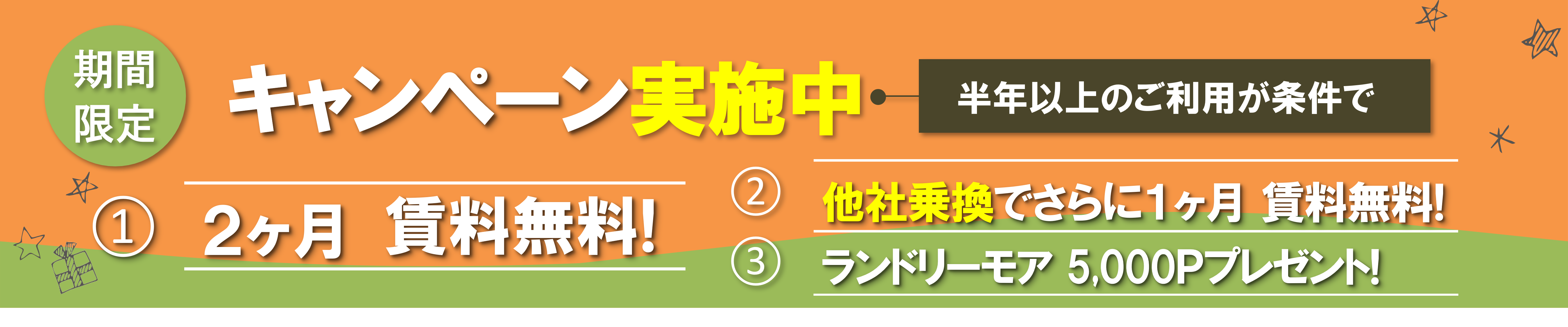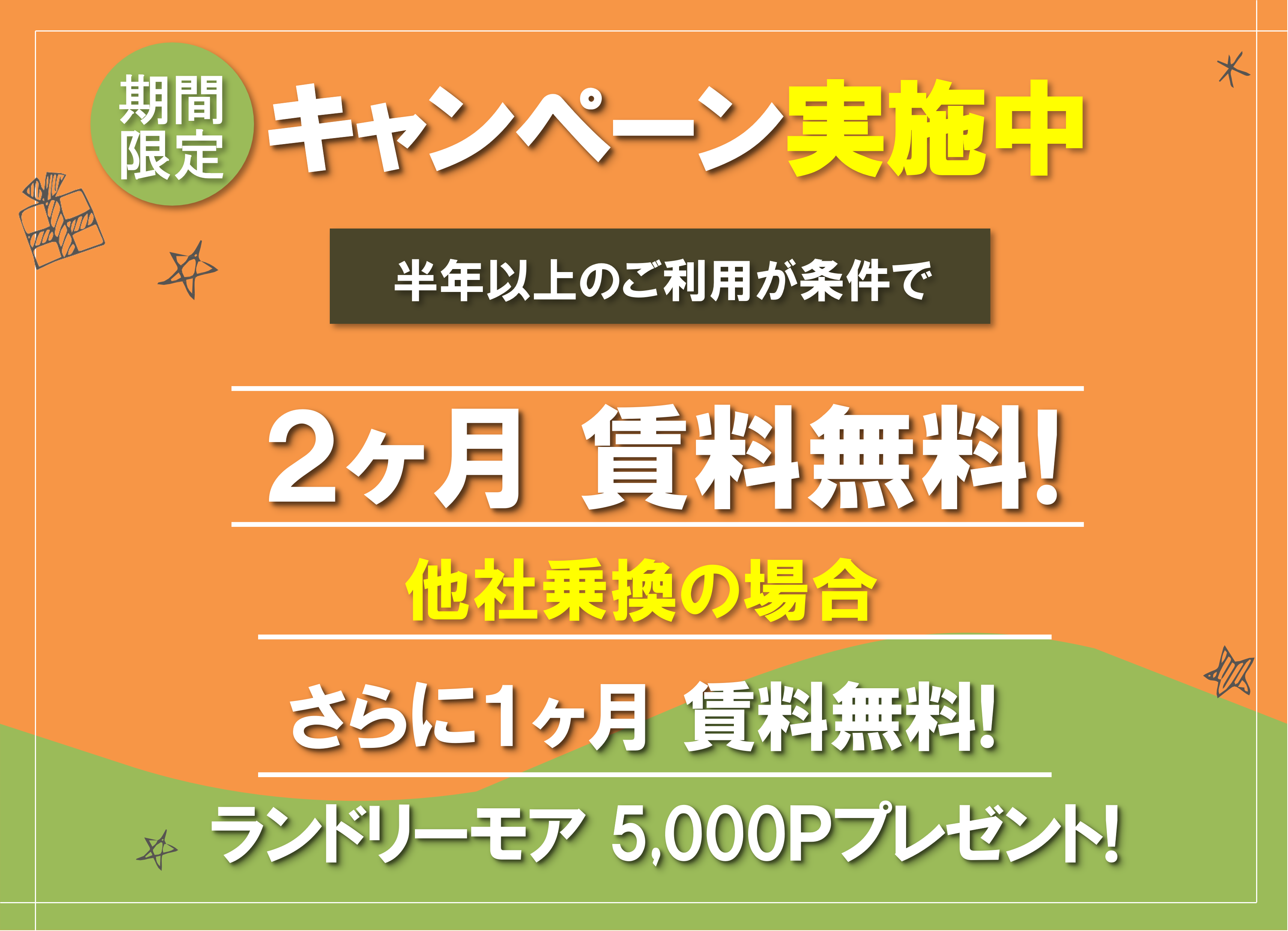 ※キャンペーンを行っている店舗では、ご利用期間が一定以上ある場合にキャンペーンが適用されます。キャンペーン期間に満たないご契約の場合は対象外となりますので、ご了承ください。