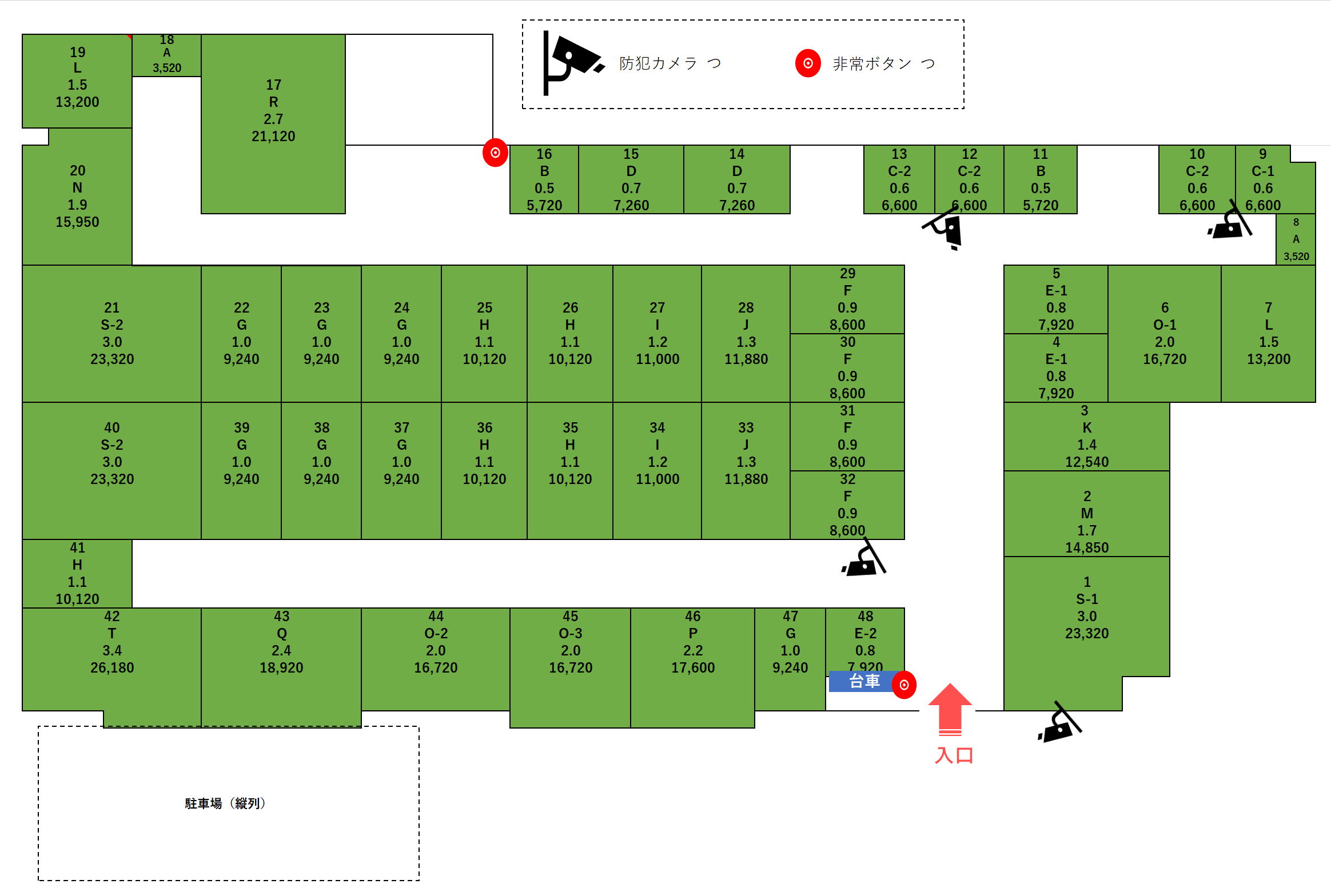 ※解約予定日までに収納物を出し、セキュリティカードをルーム内に戻して鍵を閉め解約完了となります。