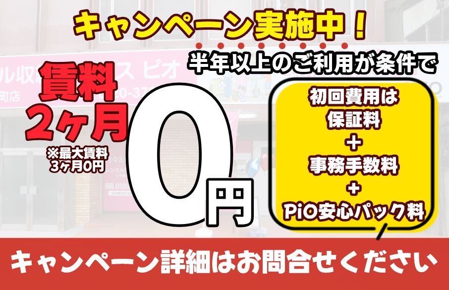 賃料2ヶ月無料キャンペーンを行っている店舗の場合、当月賃料と翌月賃料が無料となります。