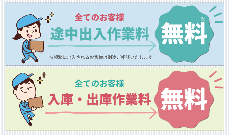 収納物品の出し入れは、ご要望に応じて営業時間内でいつでも承ります。 |