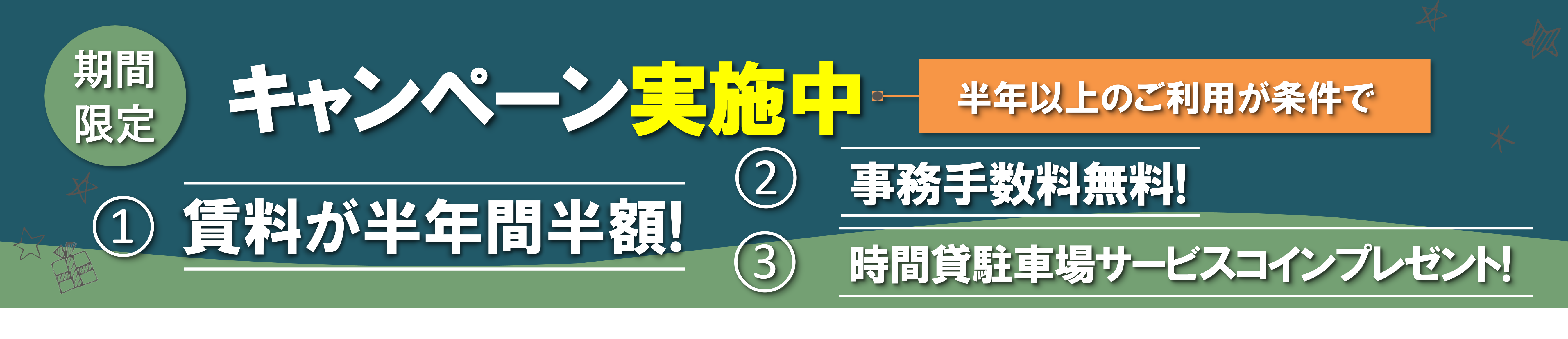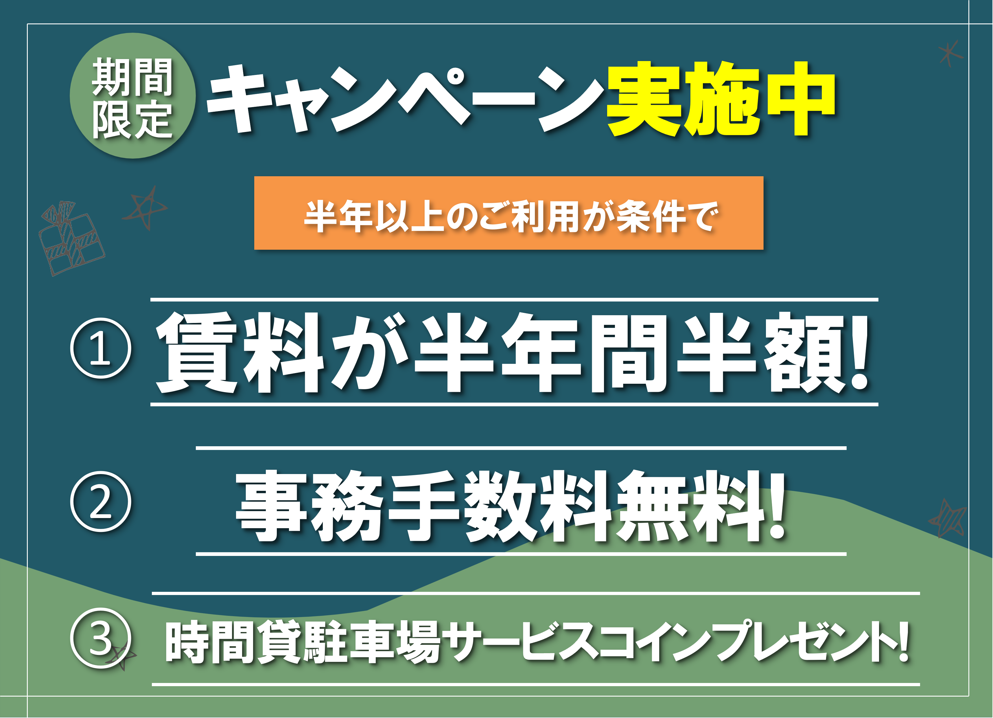※キャンペーンを行っている店舗では、ご利用期間が一定以上ある場合にキャンペーンが適用されます。キャンペーン期間に満たないご契約の場合は対象外となりますので、ご了承ください。
