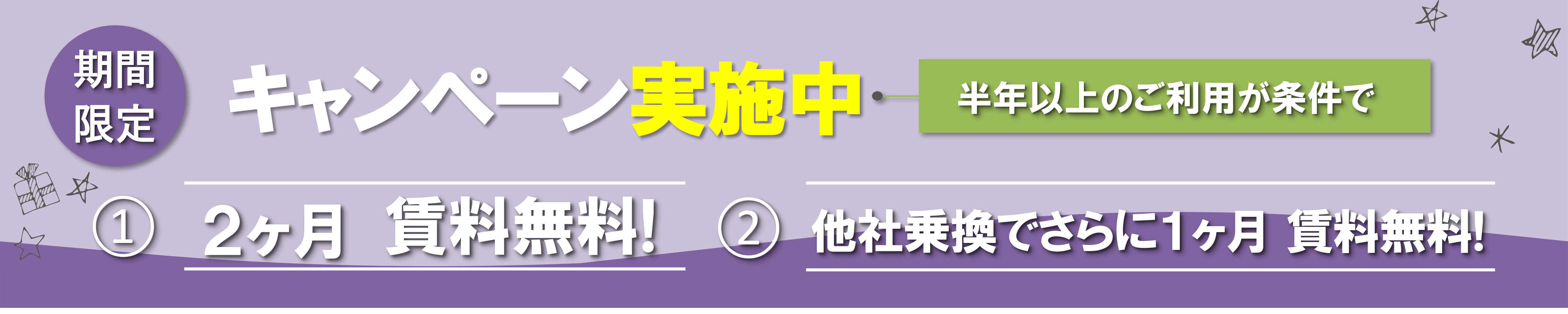 ※①②③は半年以上のご利用が条件