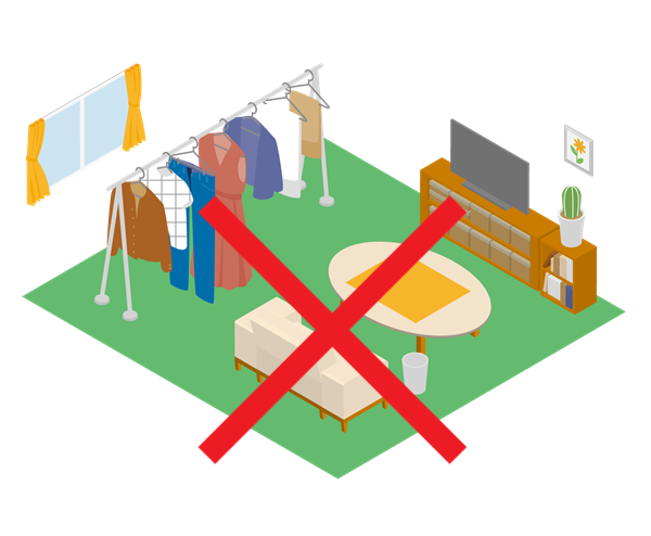 洗濯物やテレビなど見えない場所へ移動、またカバーをかけて隠す、自分の周りをパーテーションやカーテンで簡易的に区切るとよいです。